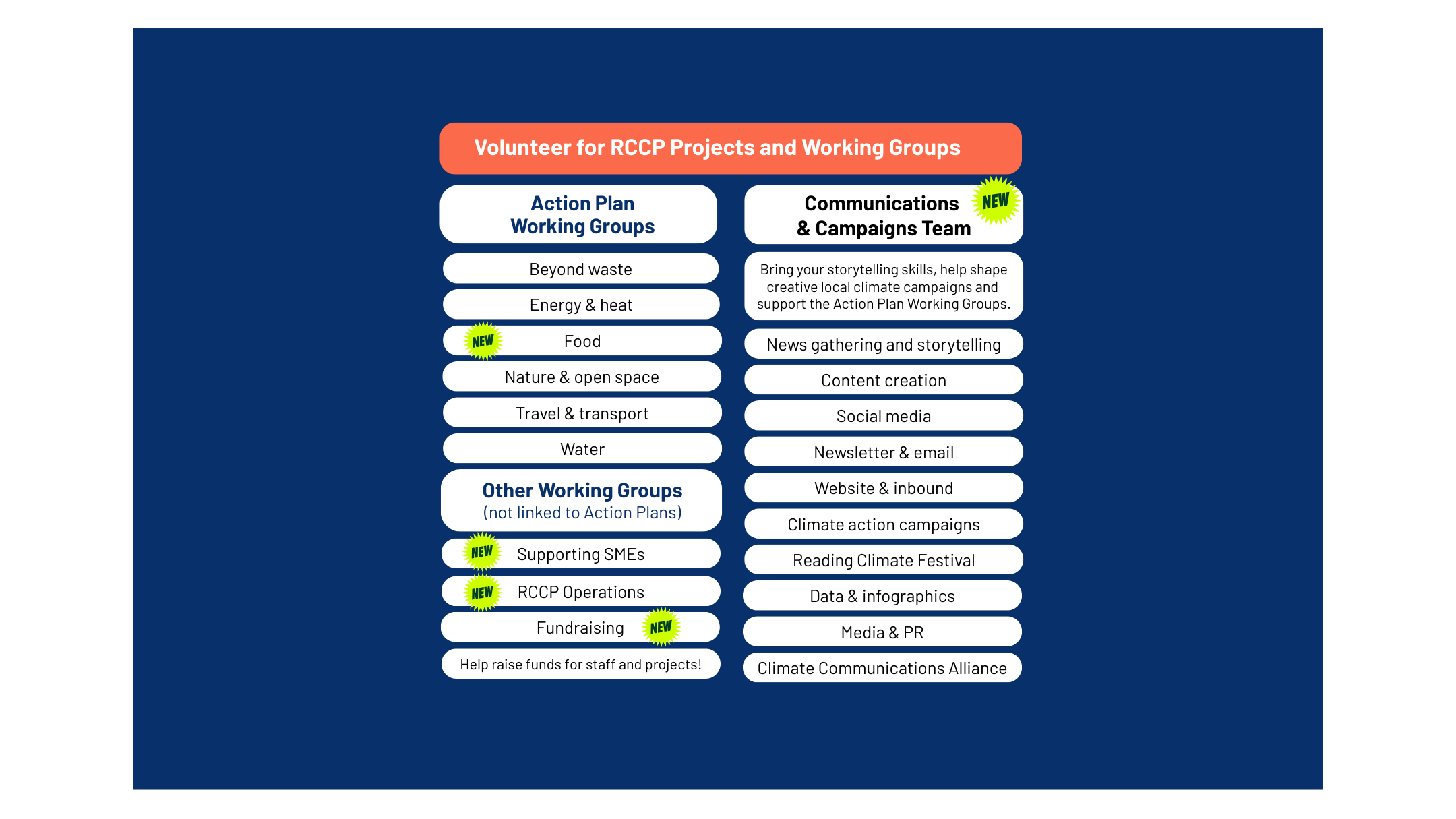 Reading Climate Change Partnership helps create frameworks and spaces for collective action. We hope you will find your own unique place in this wider climate action network, and bring your passion, experience and skills!